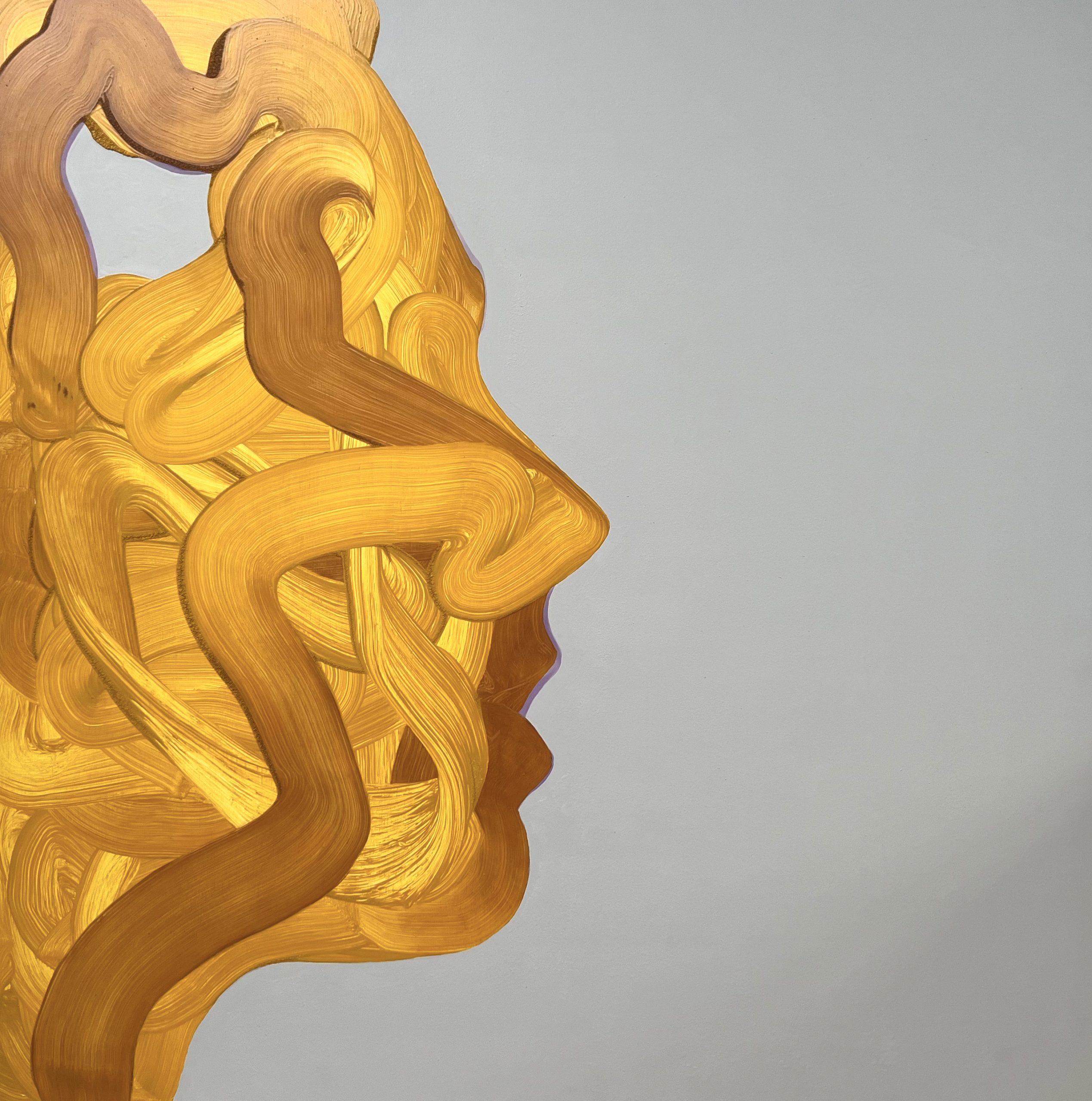 His large airy studio is a space in which his dreams, visions and engineering collide and create a vernacular so very his own. Every bit of fishing rope, metallurgic piece or netting gives rise to imagery he renders in 3-D massive sculptures or applied with the thickness of paint that 2-D becomes 3-D in its intertwining impasto.